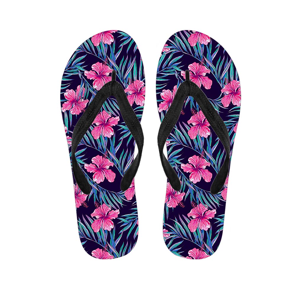 Teal Tropical Hibiscus Pattern Print Flip Flops For Men Women