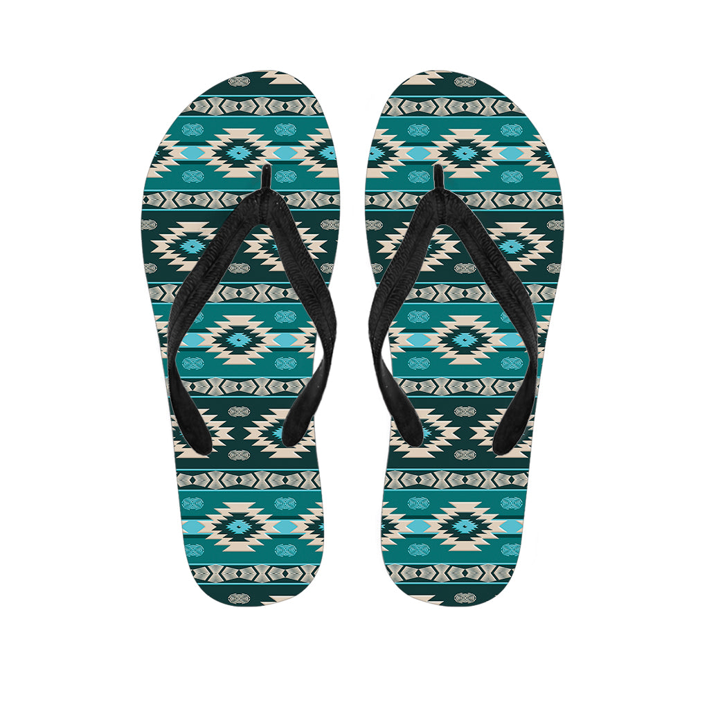 Teal Southwestern Navajo Pattern Print Flip Flops For Men Women