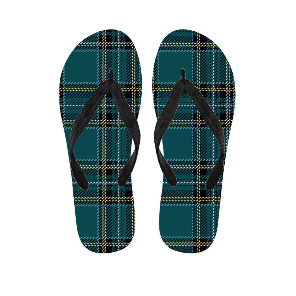 Teal Stewart Tartan Pattern Print Flip Flops For Men Women