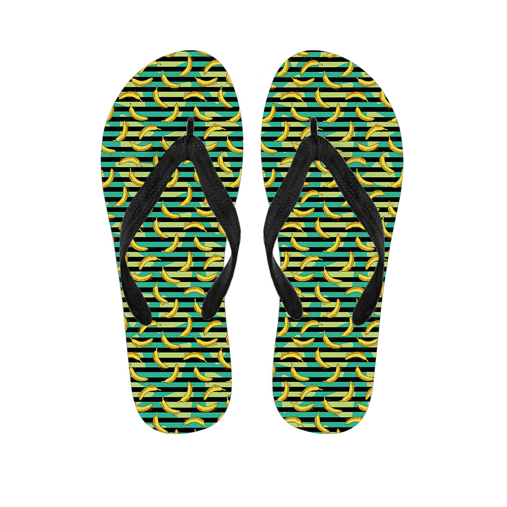 Teal Striped Banana Pattern Print Flip Flops For Men Women