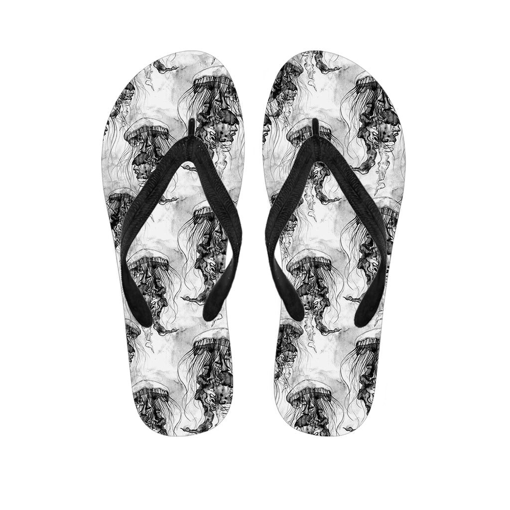 Black And White Jellyfish Pattern Print Flip Flops For Men Women