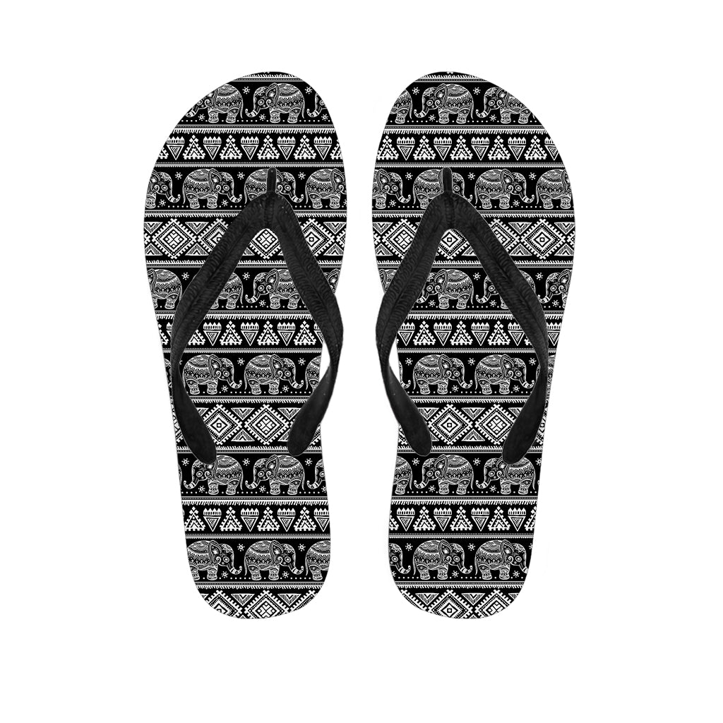 Black And White Indian Elephant Print Flip Flops For Men Women