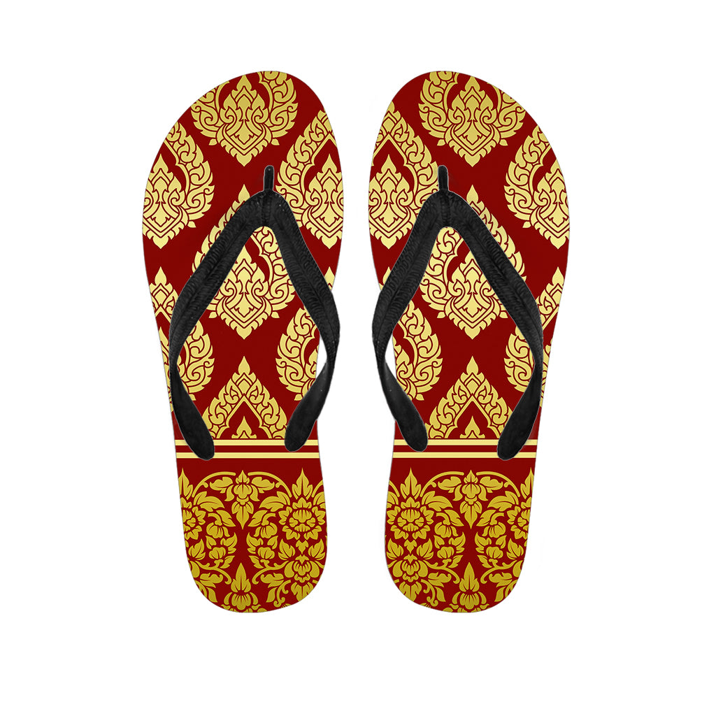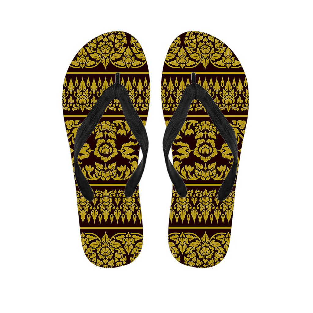 Traditional Thai Flower Pattern Print Flip Flops For Men Women