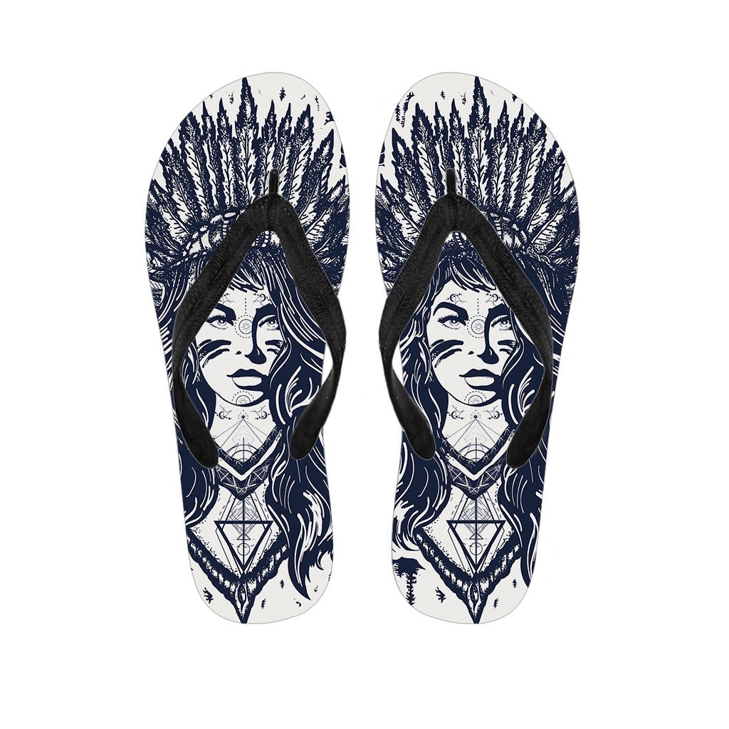 Tribal Native Indian Girl Print Flip Flops For Men Women