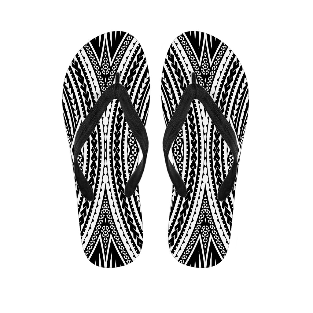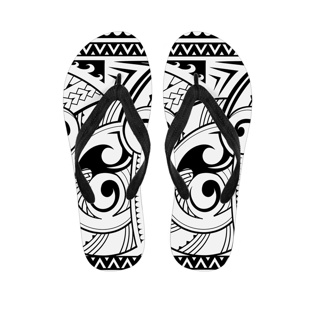 Black And White Maori Polynesian Print Flip Flops For Men Women