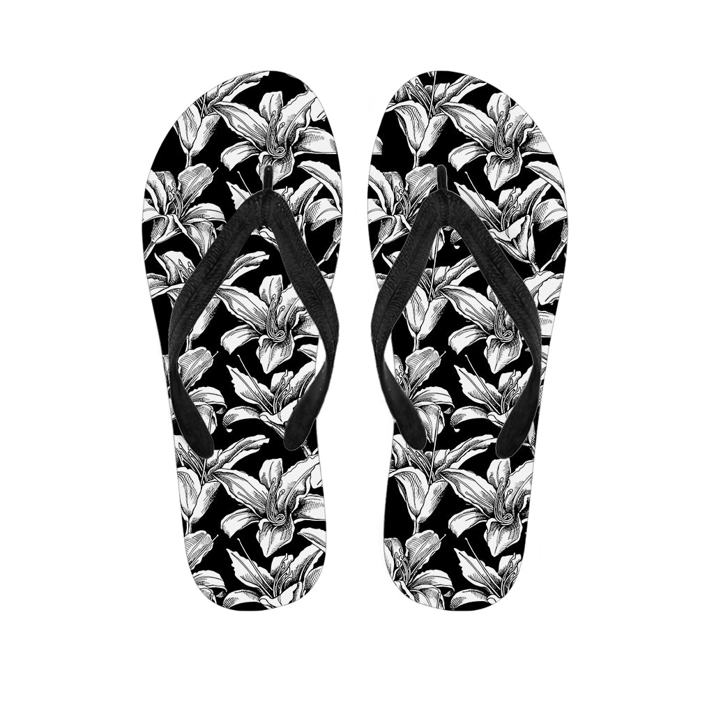 Black And White Lily Pattern Print Flip Flops For Men Women