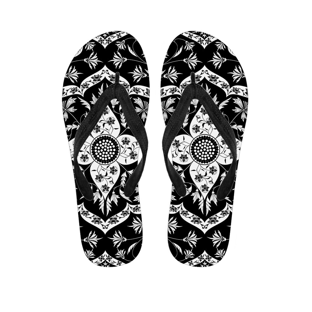 Black And White Mandala Print Flip Flops For Men Women