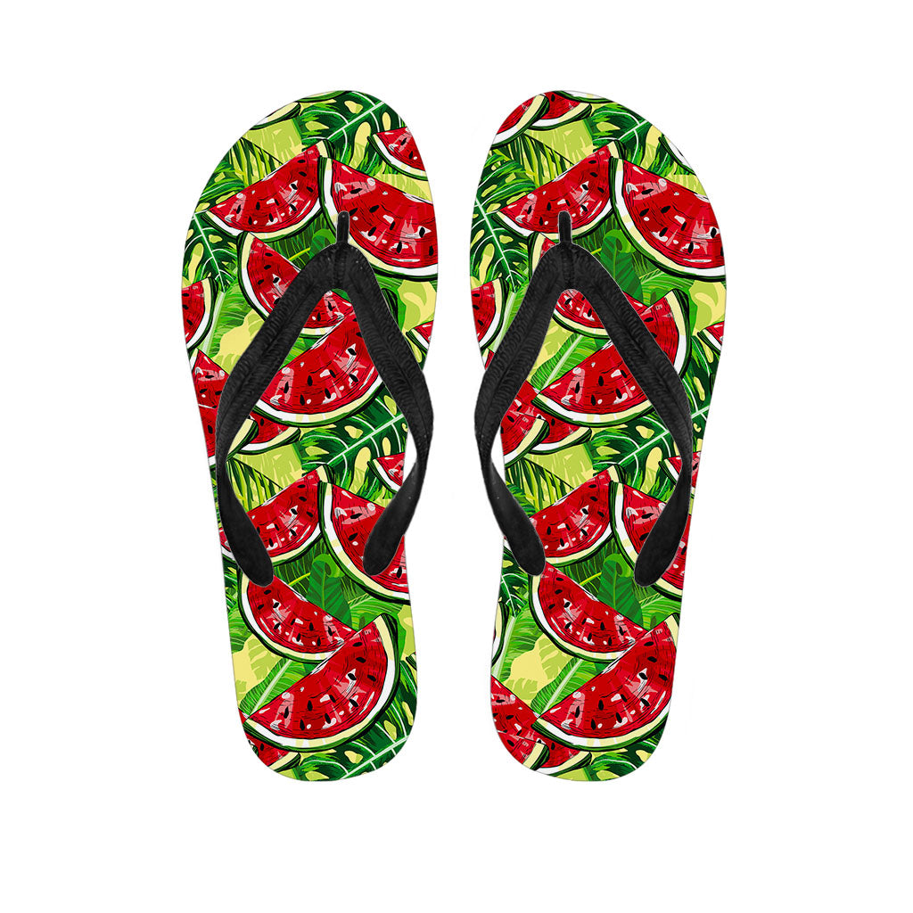 Tropical Leaves Watermelon Pattern Print Flip Flops For Men Women