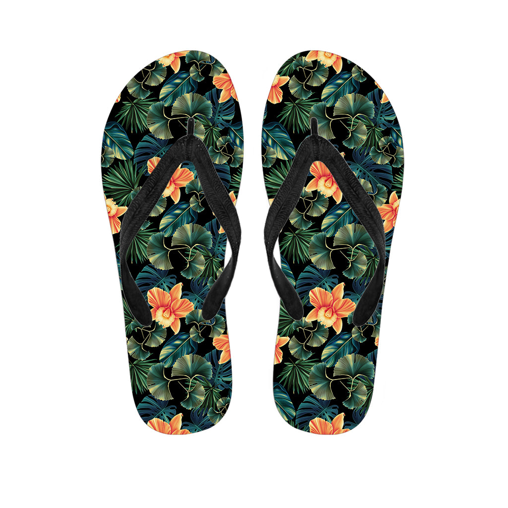 Tropical Orchid Flower Pattern Print Flip Flops For Men Women