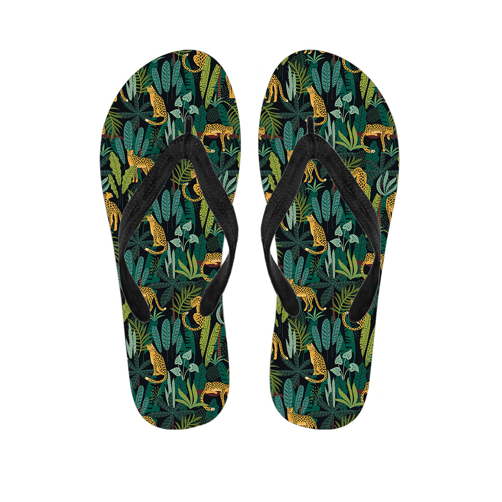 Tropical Jaguar Pattern Print Flip Flops For Men Women