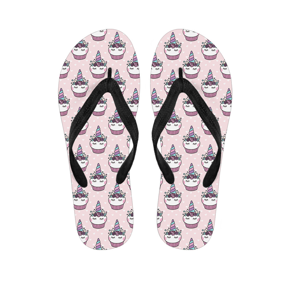 Unicorn Cupcake Pattern Print Flip Flops For Men Women