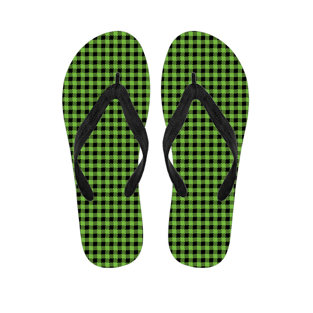 Ufo Green And Black Buffalo Check Print Flip Flops For Men Women