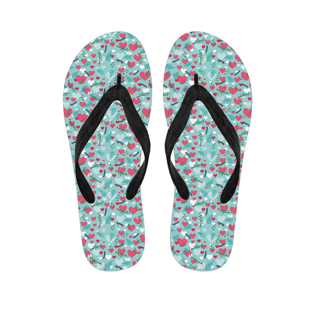 Valentine’S Day Heart And Flower Print Flip Flops For Men Women