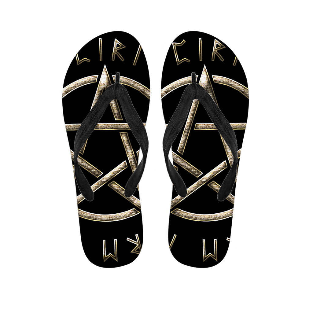 Viking Nordic Runes Pentagram Print Flip Flops For Men Women