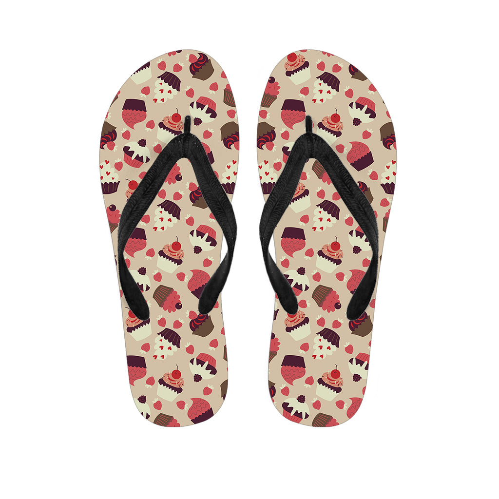 Vintage Cupcake Pattern Print Flip Flops For Men Women