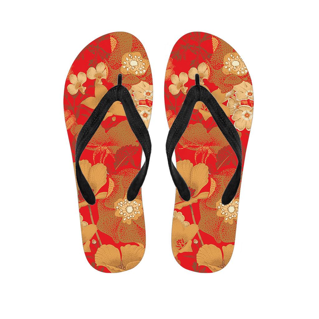 Vintage Chinese Flower Print Flip Flops For Men Women