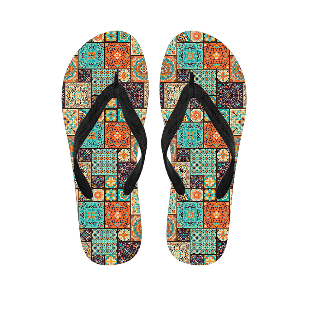 Vintage Floral Patchwork Pattern Print Flip Flops For Men Women
