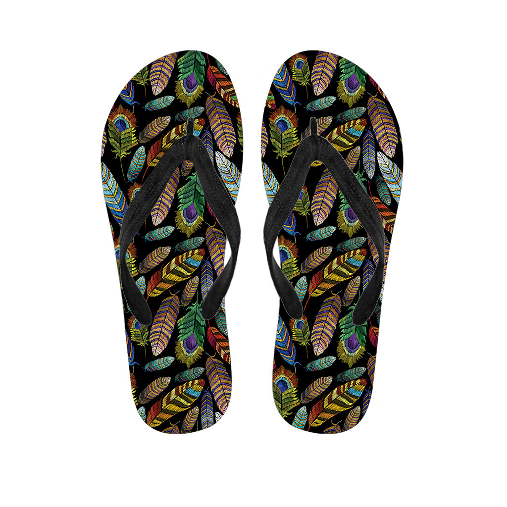 Vintage Feather Pattern Print Flip Flops For Men Women