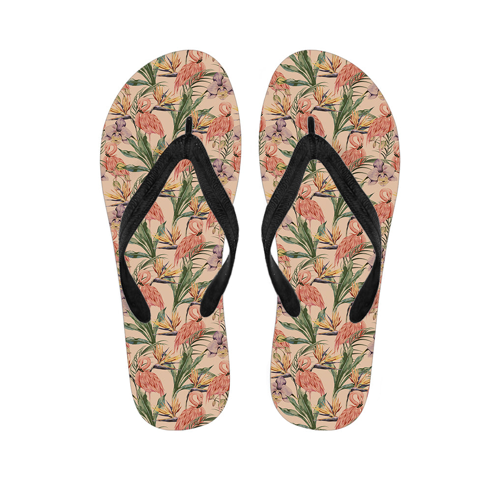 Vintage Flamingo Pattern Print Flip Flops For Men Women