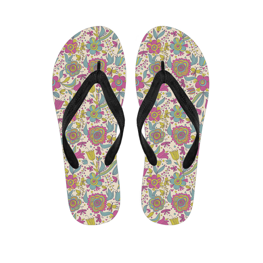 Vintage Flower Patchwork Pattern Print Flip Flops For Men Women