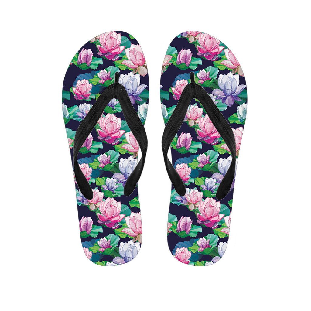 Vintage Lotus Flower Print Flip Flops For Men Women
