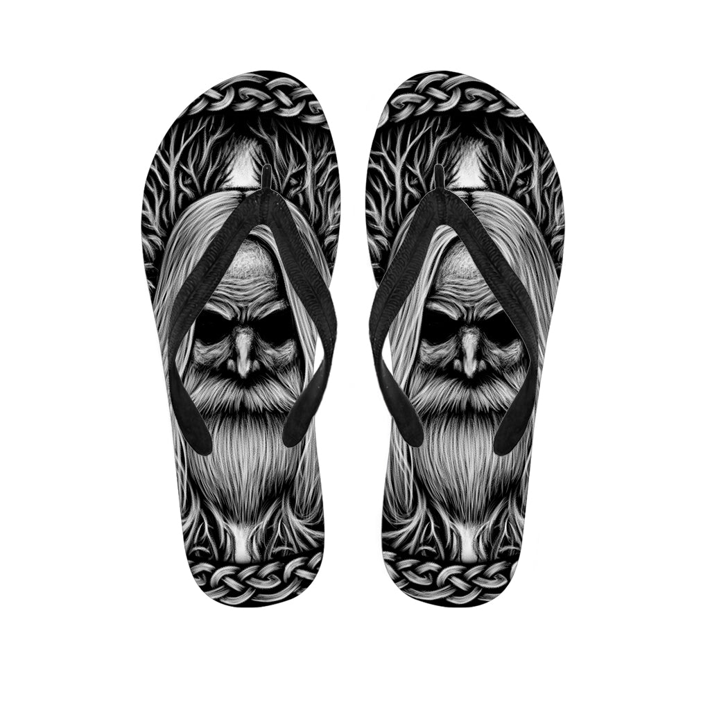 Black And White Odin With Crows Print Flip Flops For Men Women