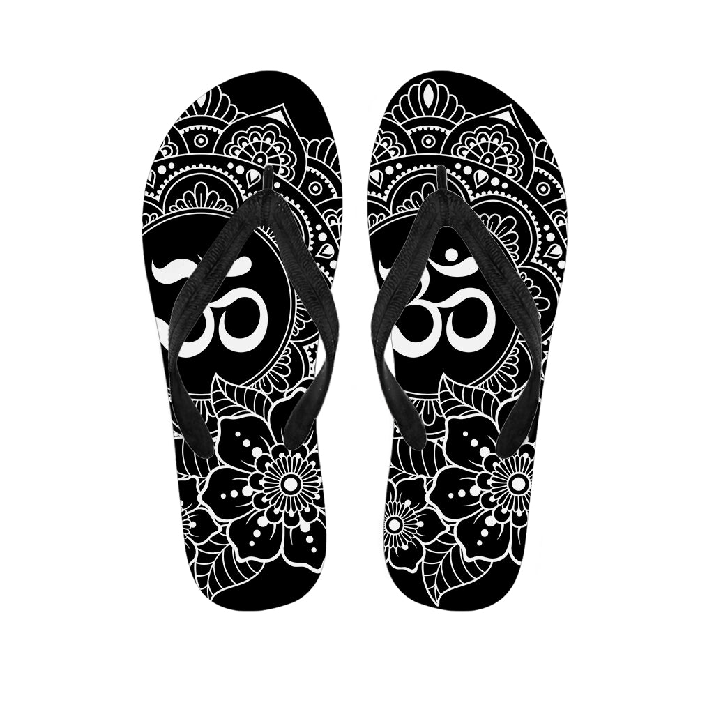 Black And White Om Print Flip Flops For Men Women