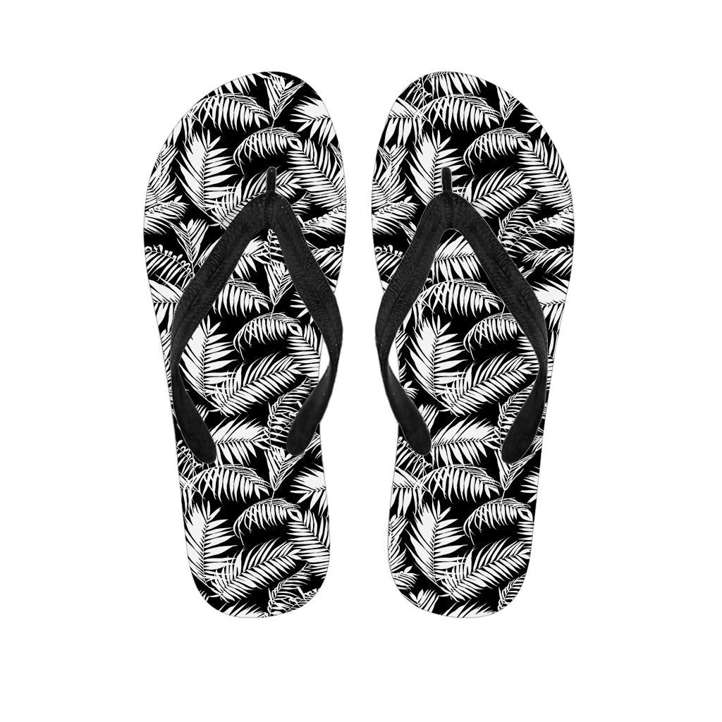 Black And White Palm Leaves Print Flip Flops For Men Women