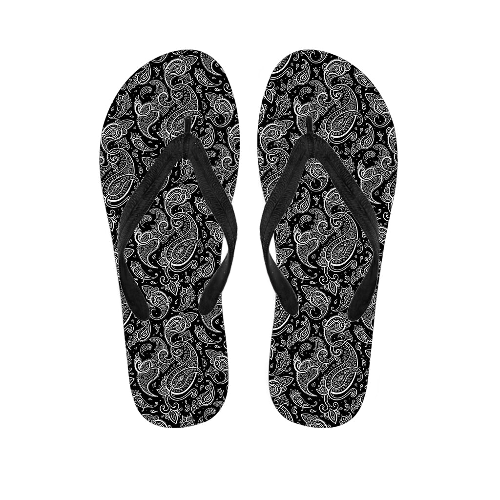 Black And White Paisley Bandana Print Flip Flops For Men Women