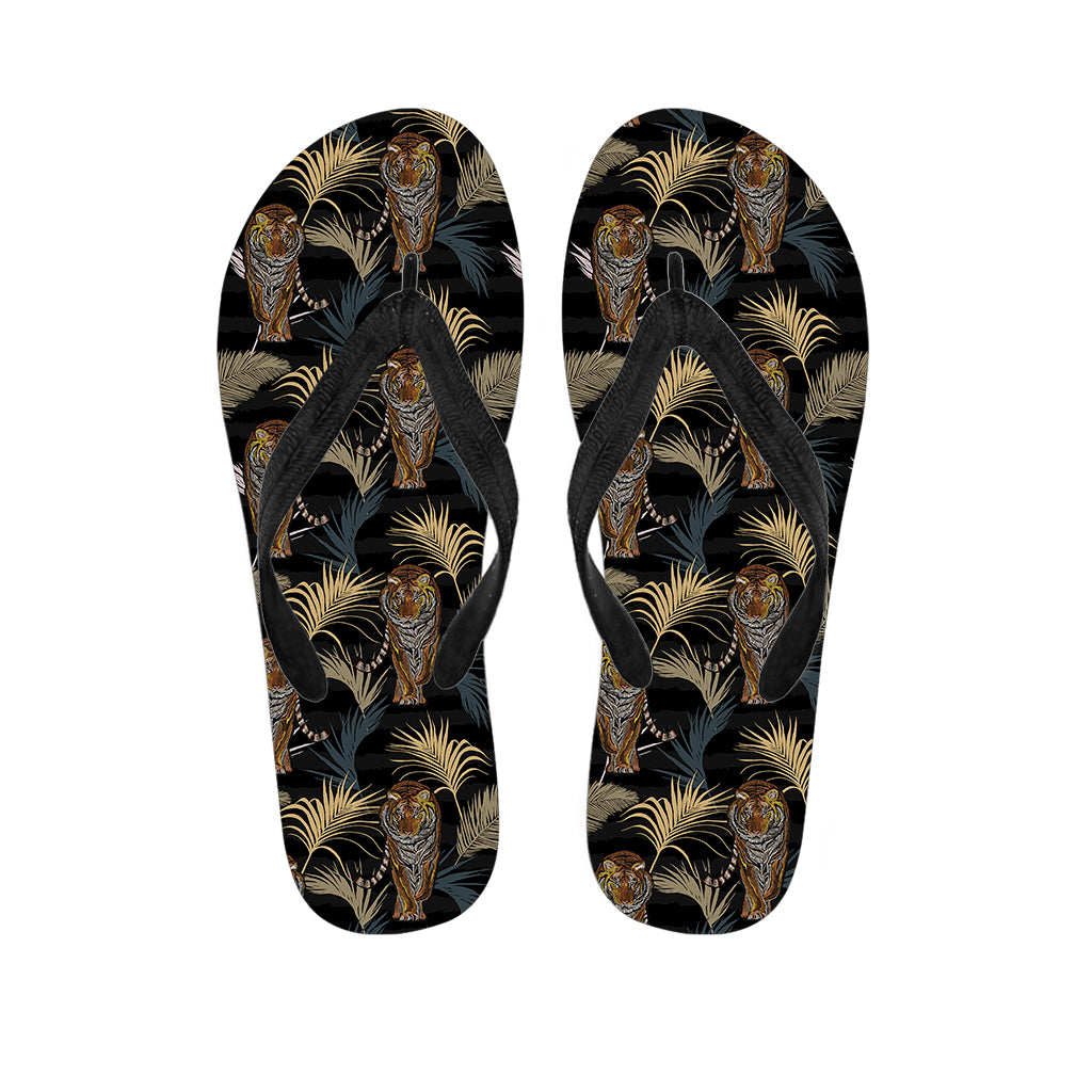 Vintage Tropical Tiger Pattern Print Flip Flops For Men Women