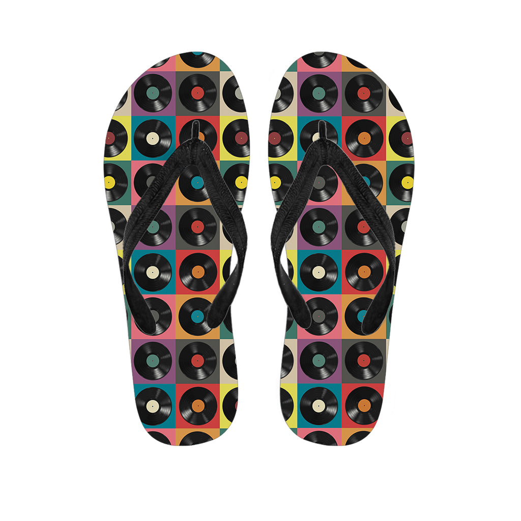 Vintage Vinyl Records Pattern Print Flip Flops For Men Women