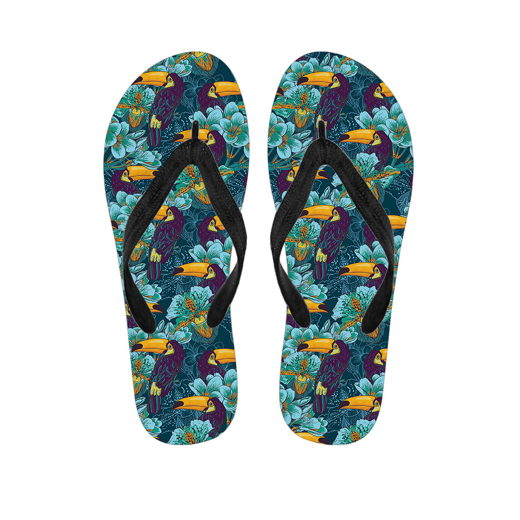 Vintage Toucan Pattern Print Flip Flops For Men Women