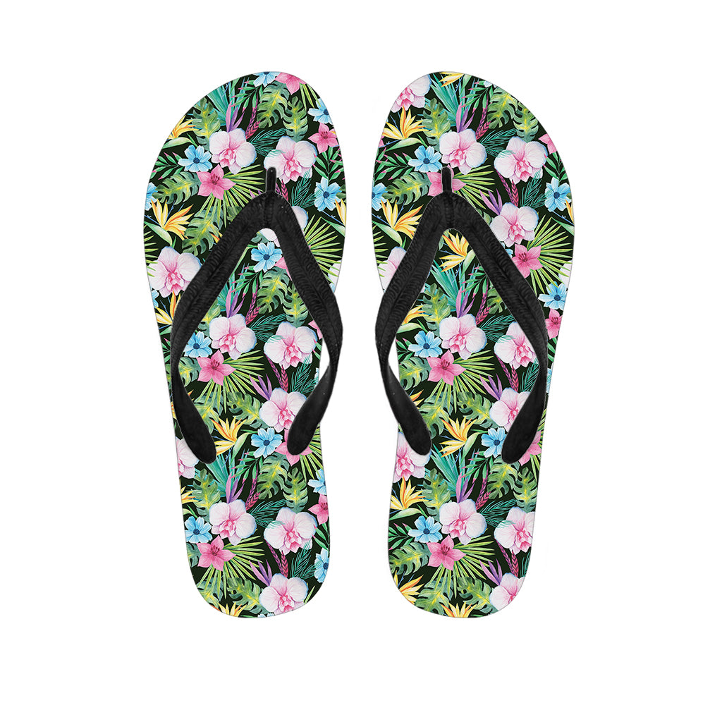 Vintage Tropical Floral Print Flip Flops For Men Women