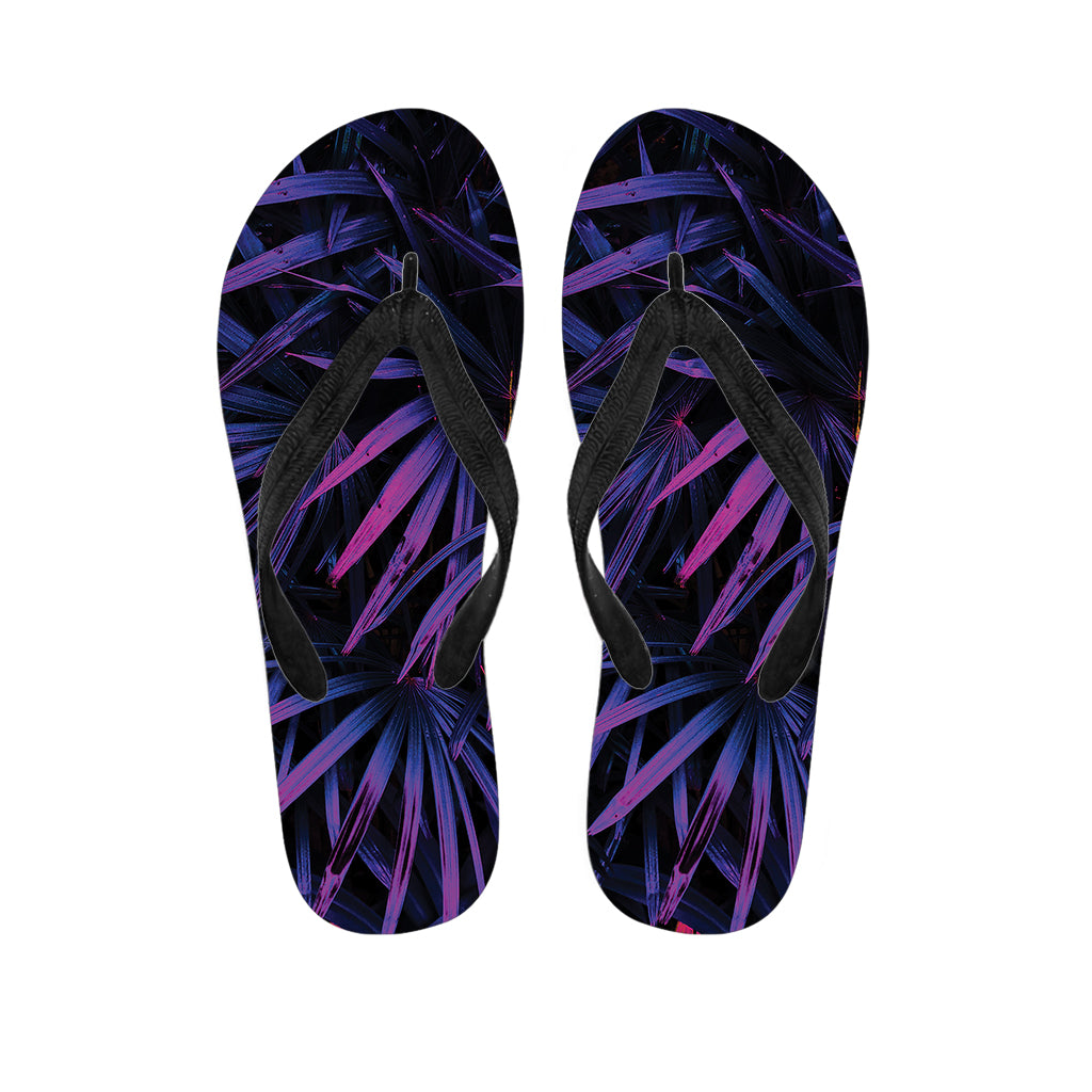 Violet Tropical Leaves Print Flip Flops For Men Women