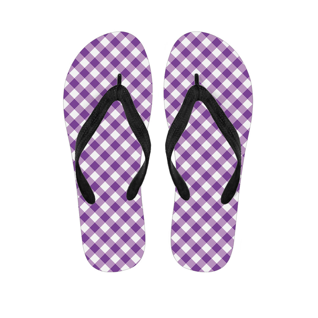 Violet And White Gingham Pattern Print Flip Flops For Men Women