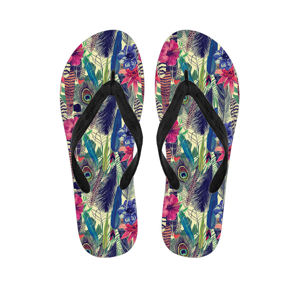 Vintage Watercolor Feather Print Flip Flops For Men Women