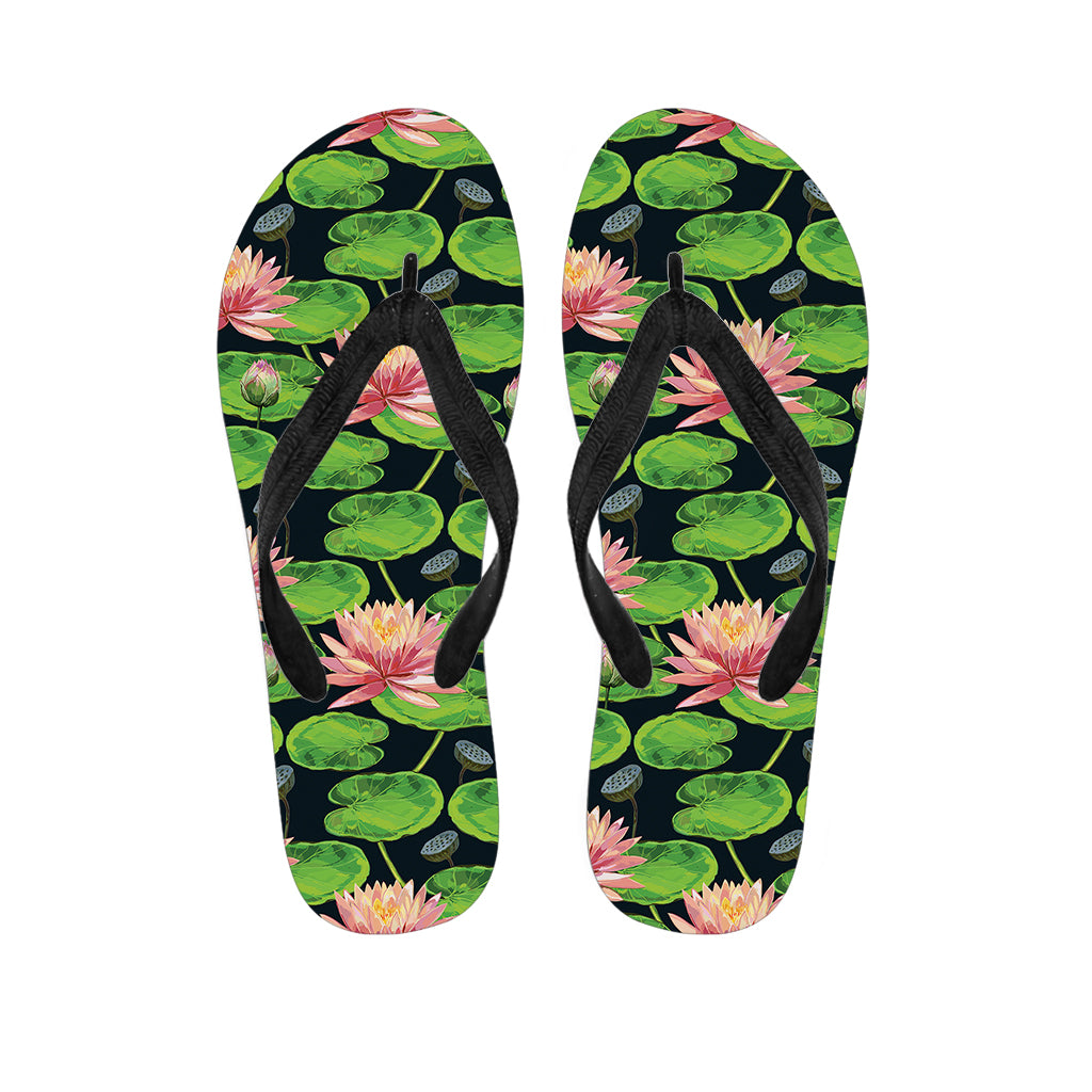 Water Lily Flower Pattern Print Flip Flops For Men Women