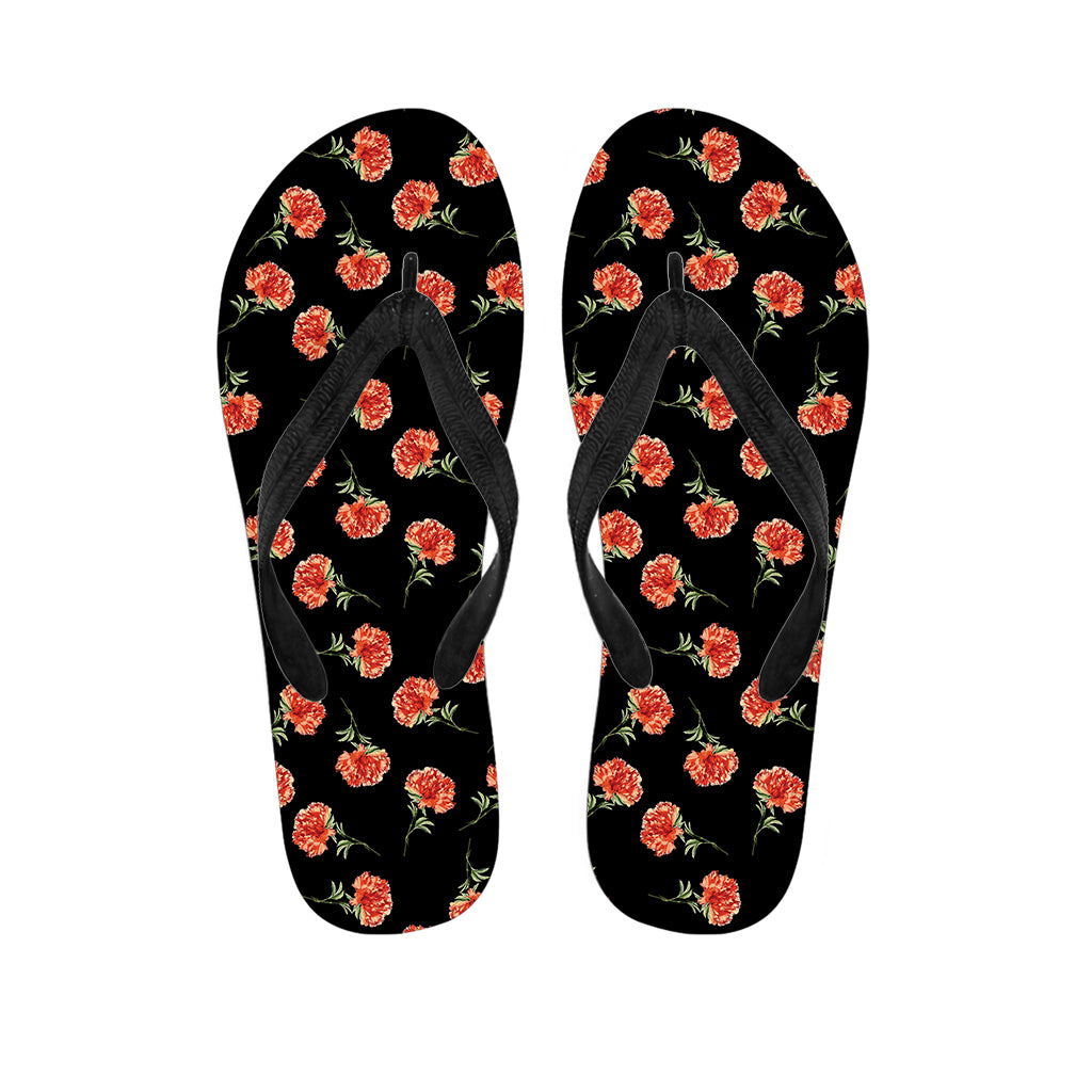 Watercolor Carnation Pattern Print Flip Flops For Men Women