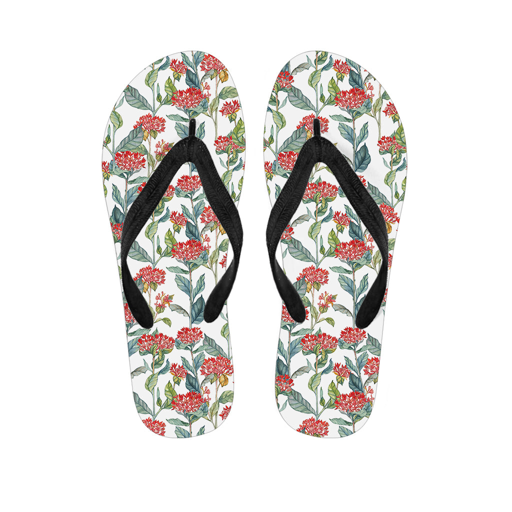 Watercolor Bouvardia Print Flip Flops For Men Women
