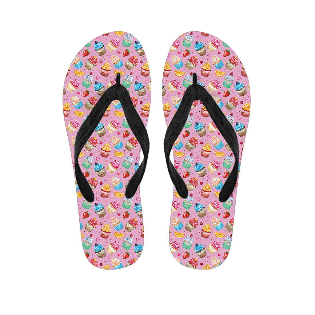 Watercolor Cupcake Pattern Print Flip Flops For Men Women