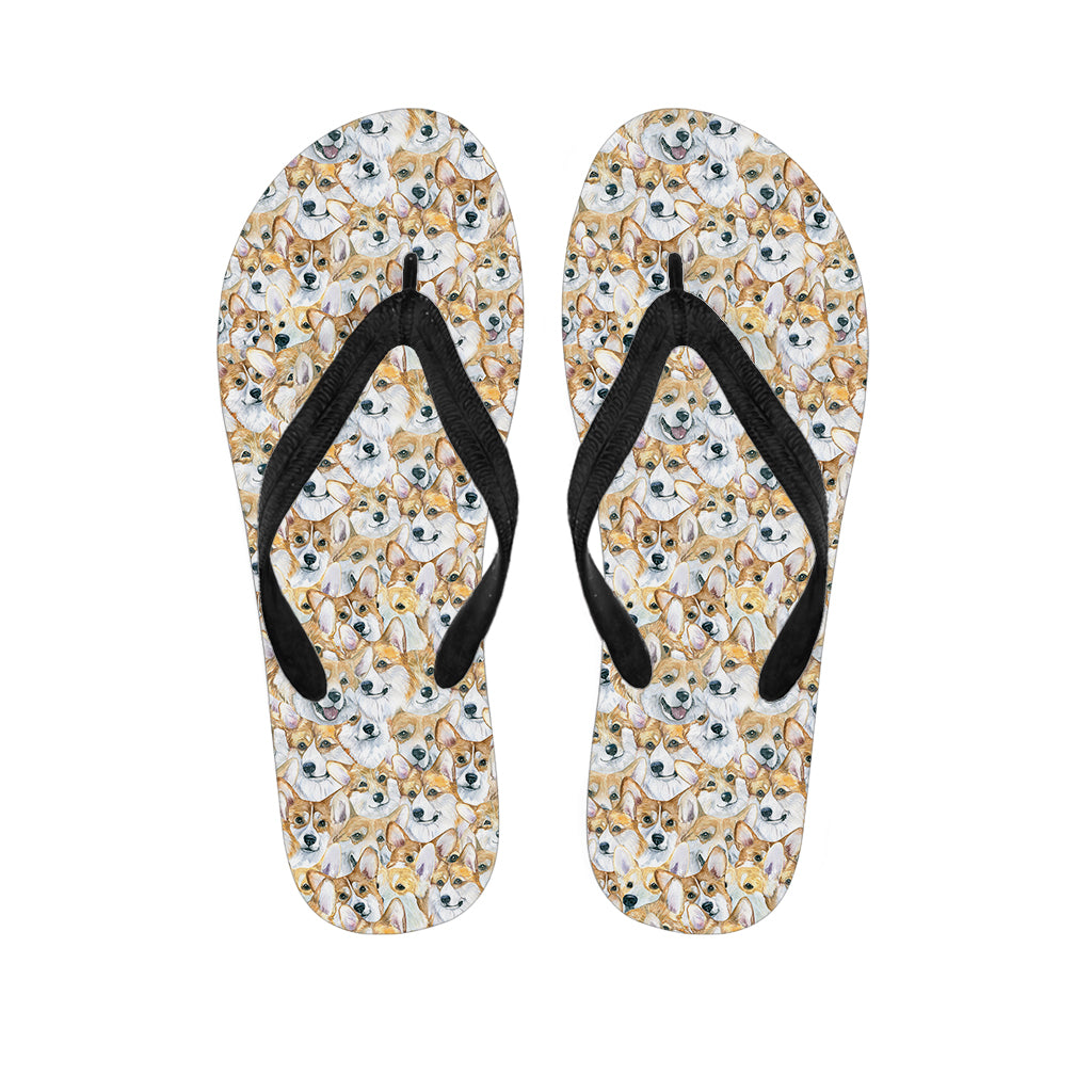Watercolor Corgi Pattern Print Flip Flops For Men Women