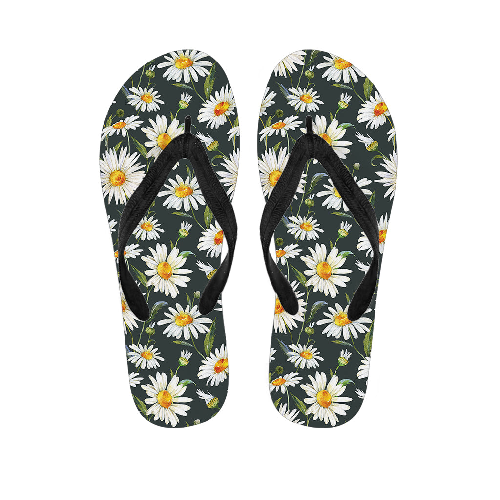 Watercolor Daisy Flower Pattern Print Flip Flops For Men Women