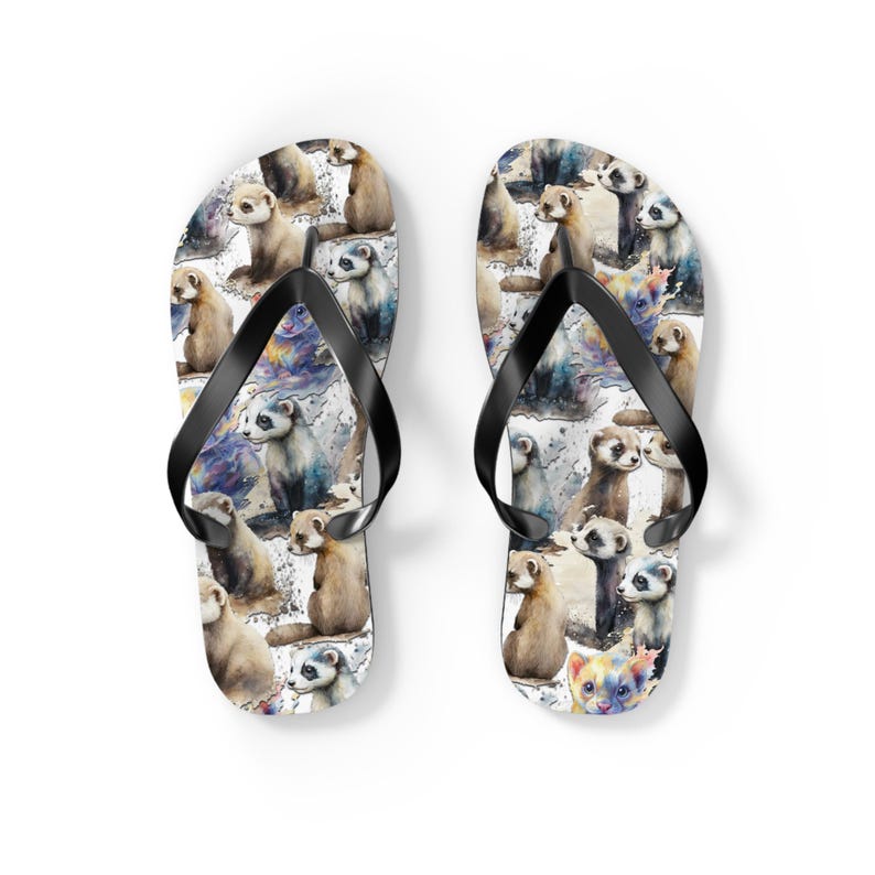 Watercolor Ferret Pattern Flip Flops Cute Animal Beach Sandals