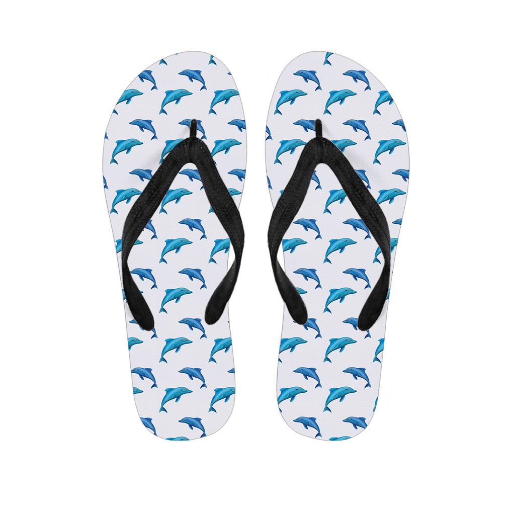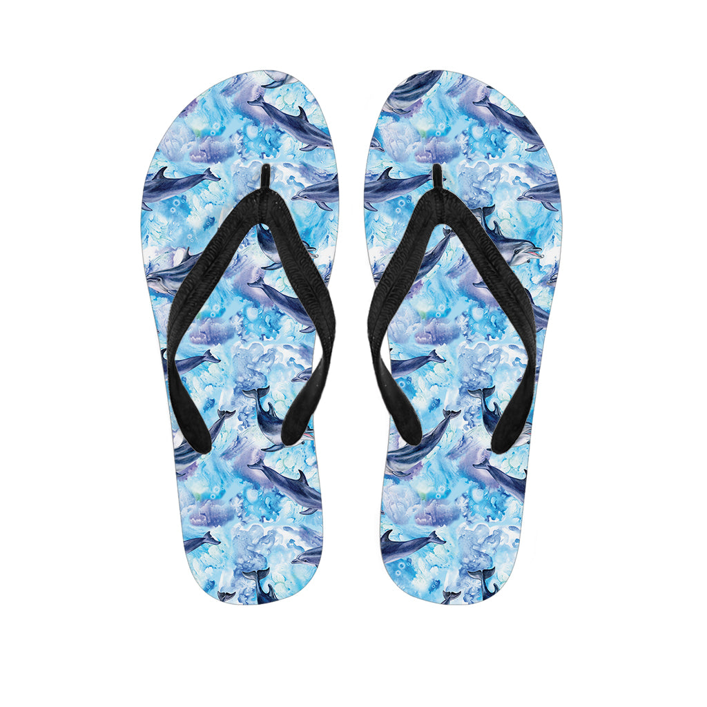 Watercolor Dolphin Pattern Print Flip Flops For Men Women
