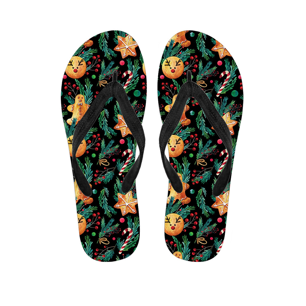 Watercolor Gingerbread Pattern Print Flip Flops For Men Women