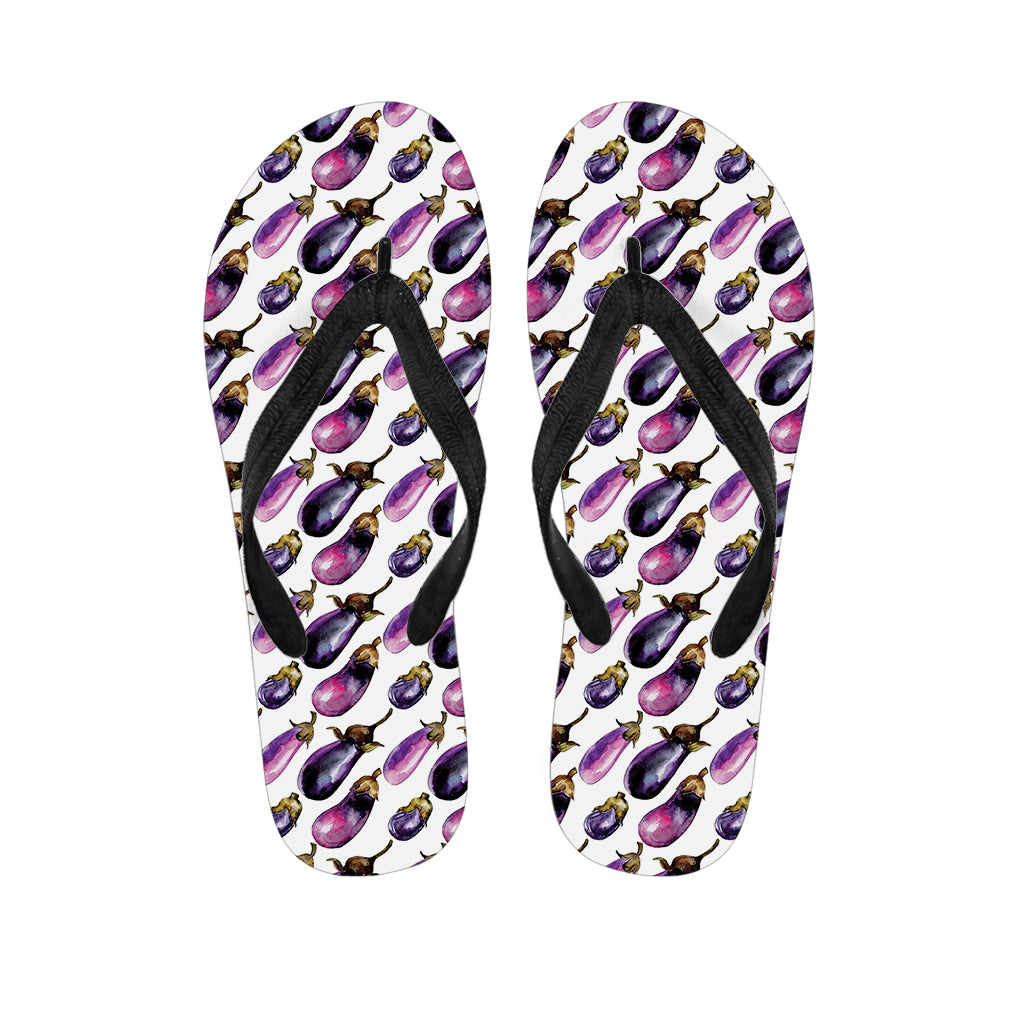 Watercolor Eggplant Pattern Print Flip Flops For Men Women