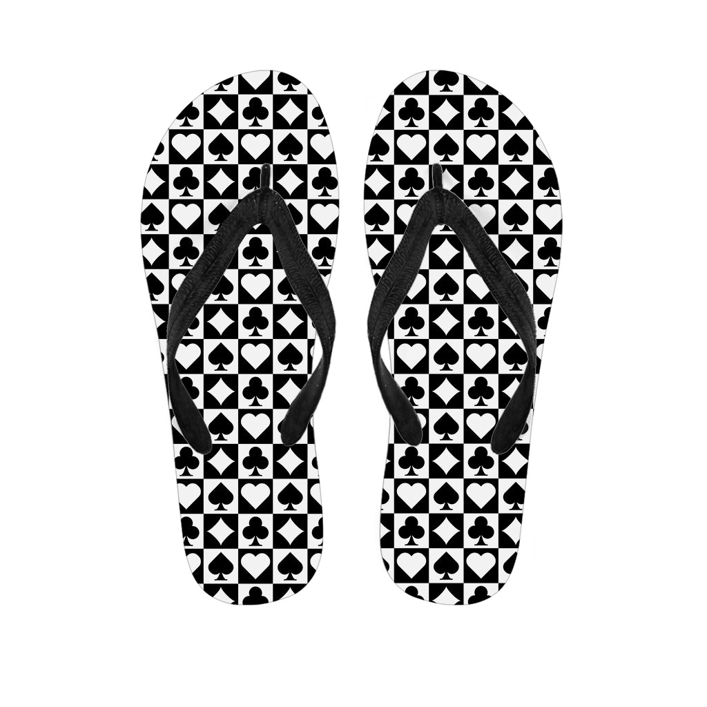 Black And White Playing Card Suits Print Flip Flops For Men Women