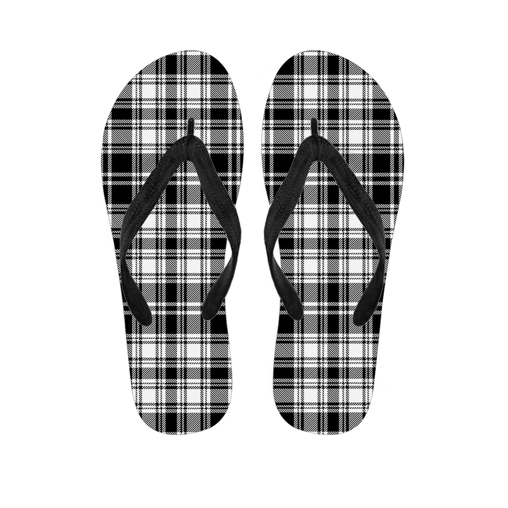 Black And White Plaid Pattern Print Flip Flops For Men Women