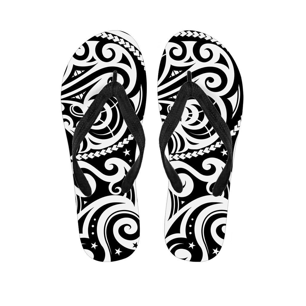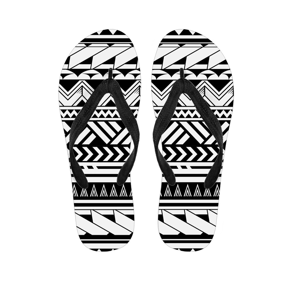 Black And White Polynesian Tattoo Print Flip Flops For Men Women