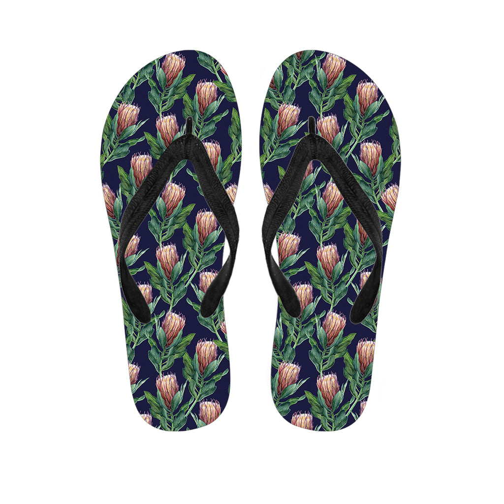 Watercolor Protea Pattern Print Flip Flops For Men Women